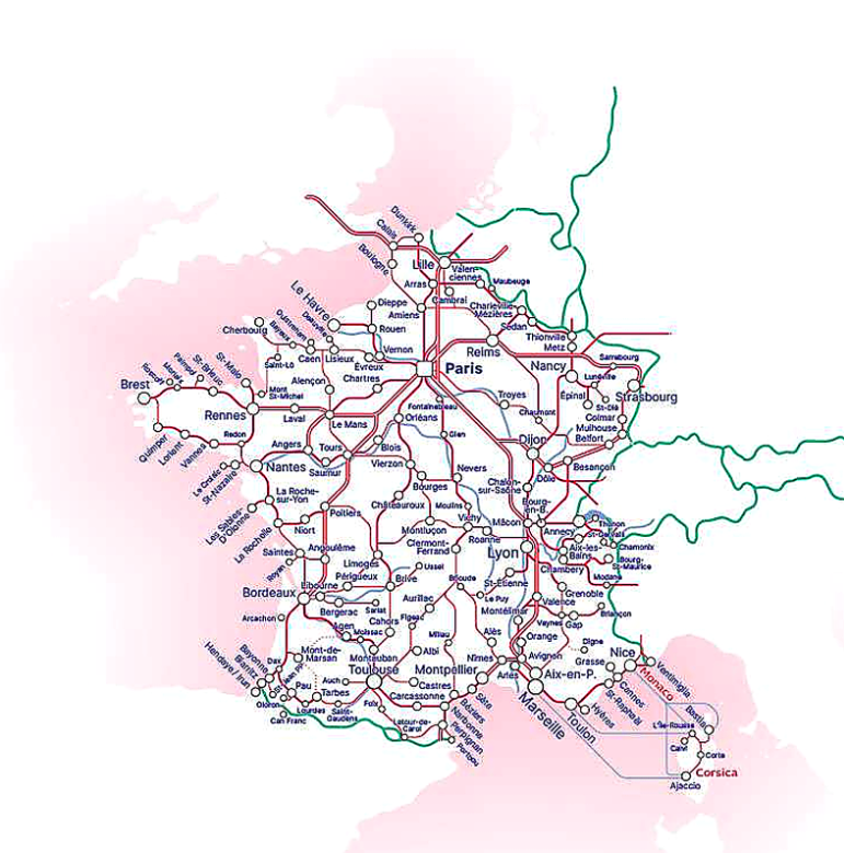 These are not 100% comprehensive rail maps (some small regional lines have been omitted), but they do include the major high-speed and intercity rail lines in each of our best-selling countries.