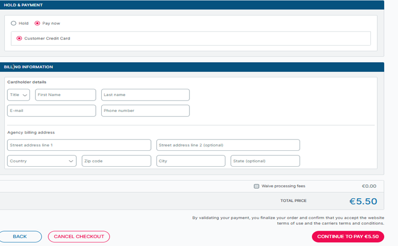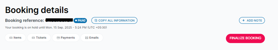 Click Finalize Booking to select your payment method, confirm your billing information and continue to payment.